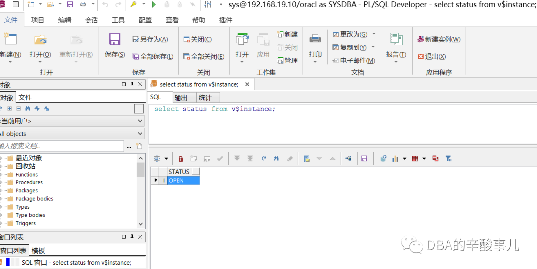 [oracle@node ~]$ sqlplus / as sysdbaSQL*Plus: Release 11.2.0.4.0 Production on Tue Mar 9 21:06:23 2021Copyright (c) 1982, 2013, Oracle. All rights reserved.Connected to:Oracle Database 11g Enterprise Edition Release 11.2.0.4.0 - 64bit ProductionWith the Partitioning, OLAP, Data Mining and Real Application Testing optionsSQL> select status from v$instance;STATUS------------OPEN