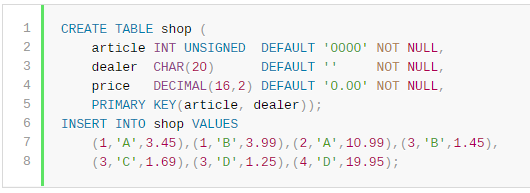 一些例子使用 shop 表存储交易商相关商品(商品编号)的价格。假设每个交易商每件商品都有一个固定的价格,那么商品和交易商就是记录的主键。