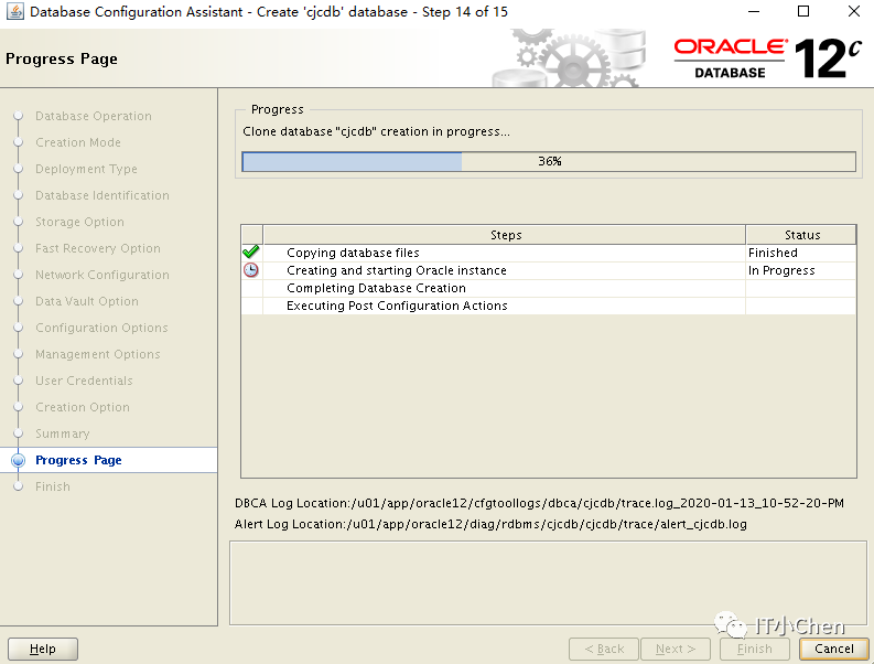 SQL> create pluggable database cjcpdb using'/home/oracle/20200113.xml' copy FILE_NAME_CONVERT =('/u01/app/oracle/oradata/dapuchai/', '/u01/app/oracle12/oradata/cjcpdb/');