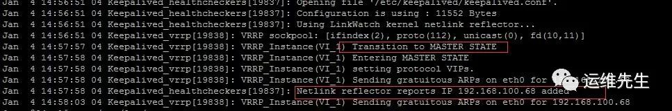 192.168.100.67上启动keepalived,查看192.168.100.68是否漂移到192.168.100.67上