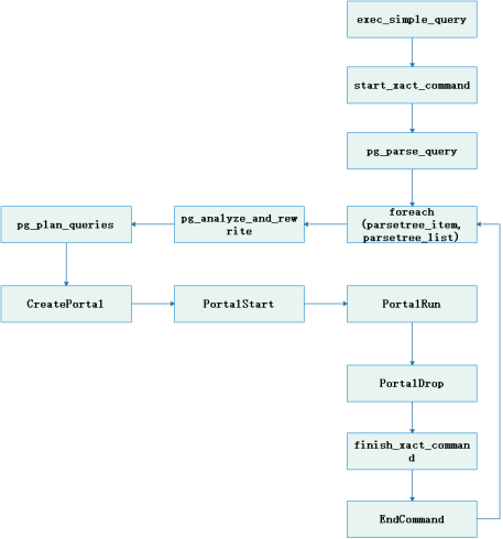 SQL引擎是数据库系统的入口,执行用户简单查询的入口函数是exec_simple_query。运行在业务处理线程Postgres。