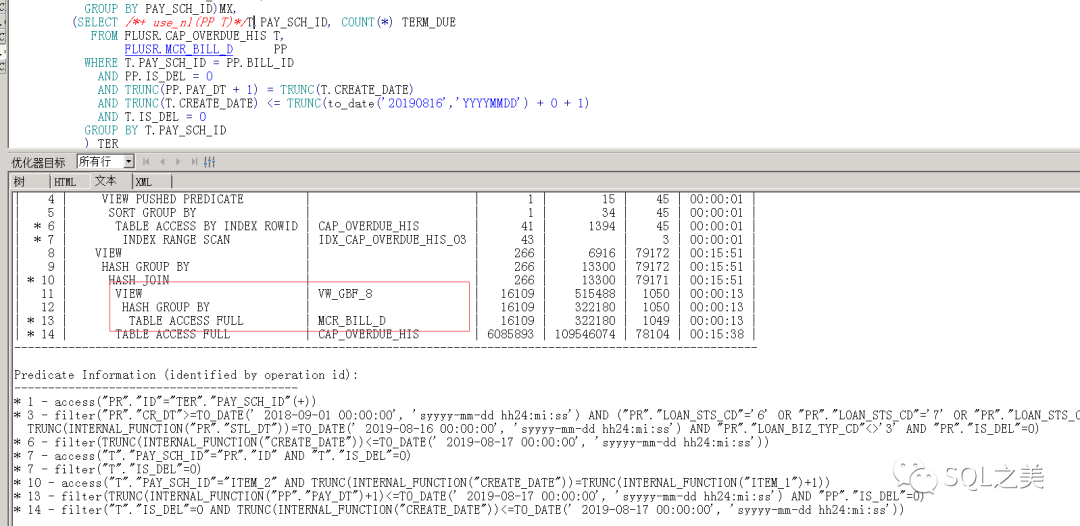 这个count(*)太致命,无法走NL,CAP_OVERDUE_HIS表还是得走全表扫描,如下图所示:
