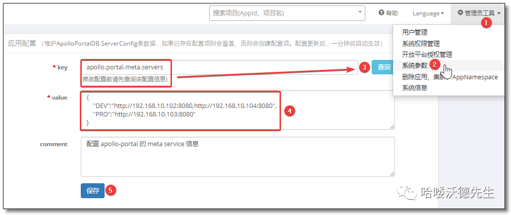 通过 apollo.portal.meta.servers