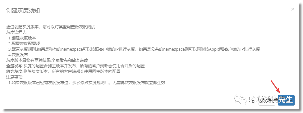 按钮,点击确定创建灰度。