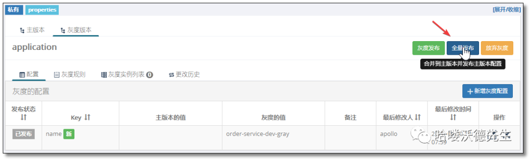 全量发布将会把灰度版本的配置合并到主分支,并发布。
