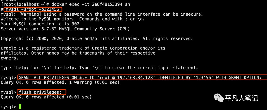 GRANT ALL PRIVILEGES ON *.* TO 'root'@'192.168.84.128' IDENTIFIED BY '123456' WITH GRANT OPTION;