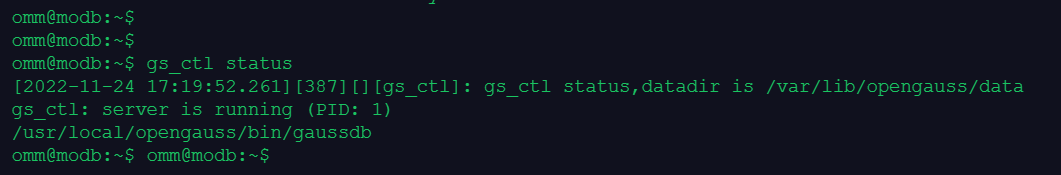 2.使用gs_ctl工具查看数据库状态,如果数据库启动,显示gs_ctl: server is running (PID: 1)