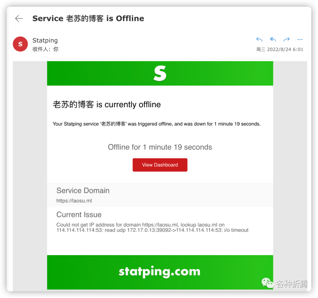 上免费下载使用。该应用程序允许您查看服务,在服务脱机时接收通知,更新组、用户、服务、消息等!启动您自己的 Statping