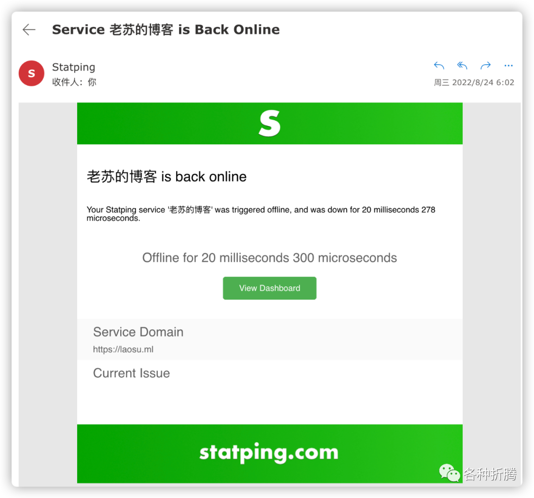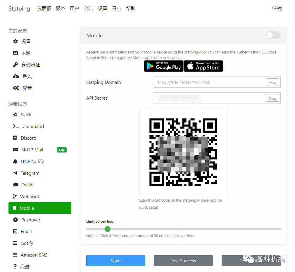 ,可以设置提醒方式,老苏还是用了邮件,比之前好设置,也更方便,可以用 Test Success