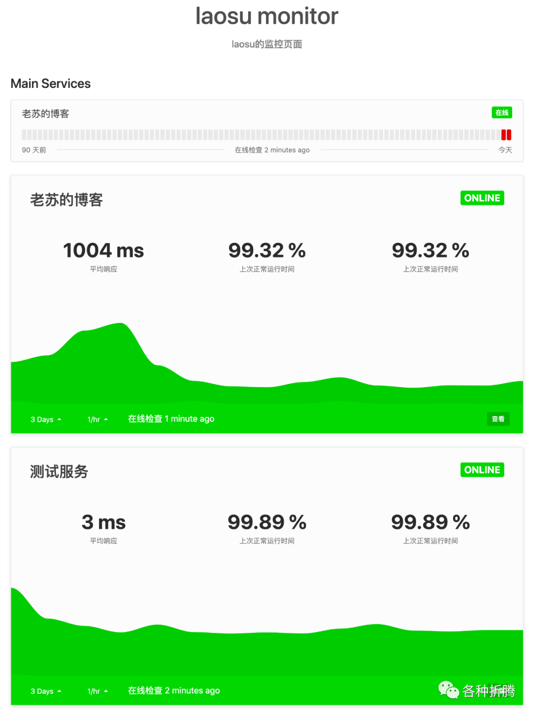 新增了一个公网服务,就是老苏的博客,另一个是局域网服务,是另一台机器上的测速服务
