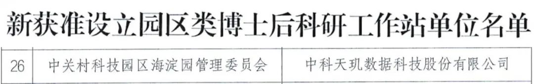 近日,北京市人力资源和社会保障局下发《关于批准74 家单位设立园区类博士后科研工作站的通知》,中科天玑数据科技有限公司成功获批“中关村科技园区海淀园企业博士后科研工作站(以下简称园区分站)”。