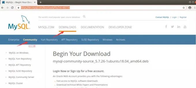 数据库的官网。里面有各种版本,MySQL5.5,MySQL5.6,MySQL5.7,MySQL8.0