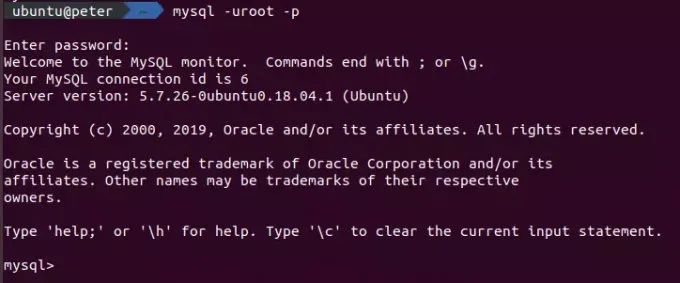 $ mysql -uroot -p # 进入mysql服务中,接下来输入上面步骤中设置的密码