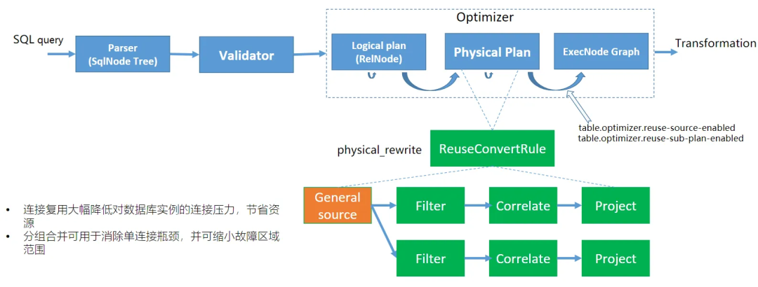 如果我们有 10 个库,100 张不同 Schema 的表要同步,那么每个 Flink 作业都需要对上游数据库新建 1000 个 Binlog 连接,这会造成严重的性能问题,因此亟需优化。
