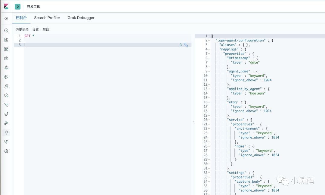 而且还提供了操作Elasticsearch索引数据的控制台,并且提供了一定的API提示,非常有利于我们学习Elasticsearch的语法。