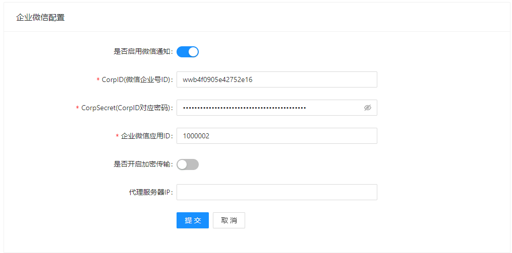 企业微信应用ID:必填,企业应用的id,可在应用详情页获取