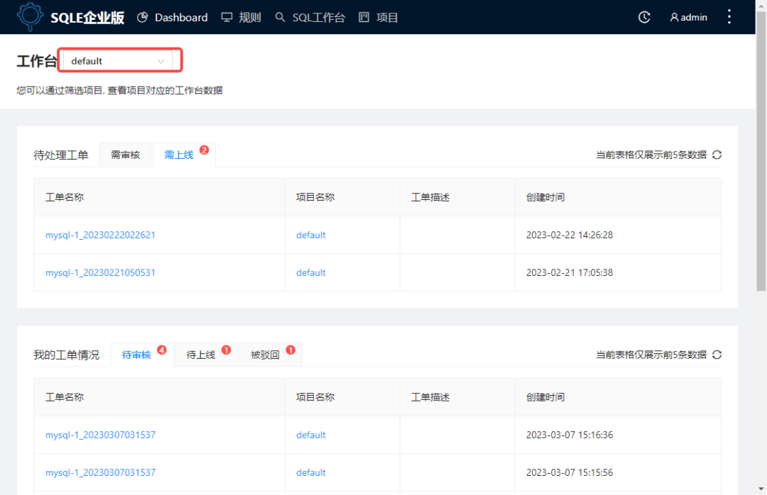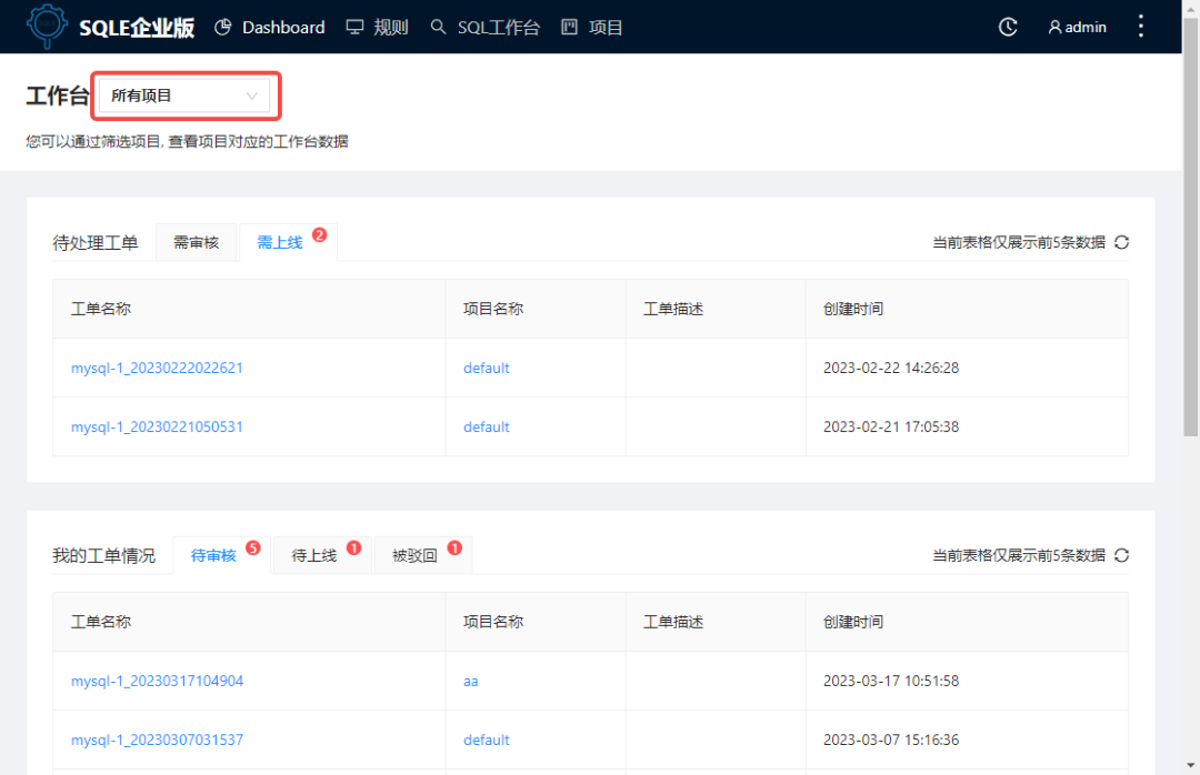 企业版用户登录平台后,进入dashboard工作台,可查看所有项目的待办信息汇总