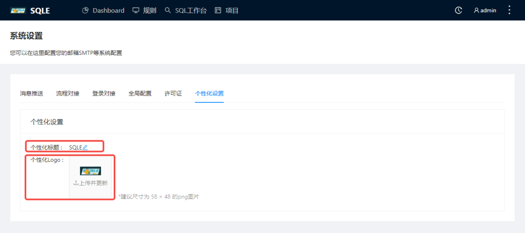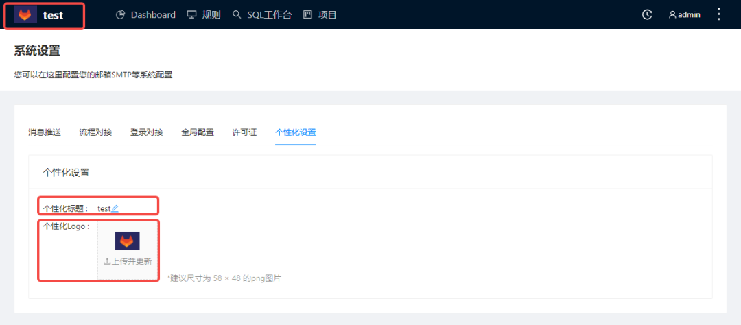 管理用户进入系统设置,选择个性化配置,用户可查看平台当前使用的logo及页面标题
