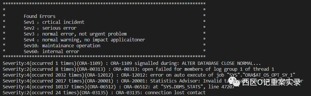 list summary:汇总每种ORA错误,并按预定的集中severity排序。