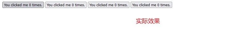 我们来分析一下这个实际效果,button-counter标签是我们组件的名字,html标准并无这个标签,button-counter标签的效果恰好是template属性中的声明内容,也就是Vue帮我们做了翻译,也就是说我们在html文件中将写<组件名>,Vue会自动的寻找该组件中声明的template属性的值替换<组件名>,能找到的前提是你已经通过Vue.component进行注册,代码复用的真义就在于此。