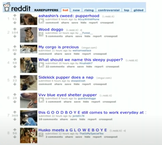 除了上面介绍的几个模块,我们来具体看看另外几个模块是干什么的,先来看看Listing。它可以说是整个Reddit最基本的部分了,就是我们在首页看到的那个按照一定顺序排列的list: