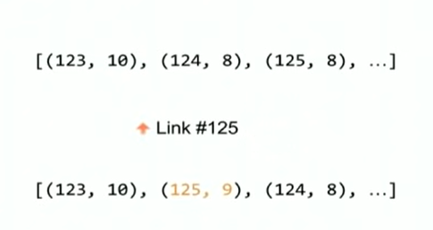 这个例子中,开始的时候id=125有8个点赞,排在第三位。这时候有一个新的点赞过来,点赞数目就变成了9个,它就会重新排到了第二位。从技术的角度来说,就是在点赞的job处理中,会首先读取当前cache中的内容,然后根据点赞的结果修改这个内容,然后再写到cache中。是不是发现这种做法已经不能再简单称之为Cache了,准确说已经是某种类似数据库的存储了。另外这里他们为了防止一些冲突发生,整个过程中加了锁。