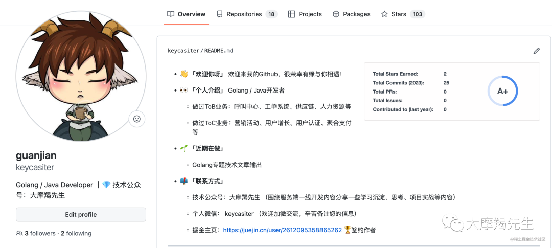 此外,技术博客也是很好的个人IP,这里能够洞察到一个人的成长过程甚至心路历程。上学的时候老师总说“字如其人”,同理,技术博客也蕴含着“文如其人”的味道,内容编排、文笔运用、画图排版等都体现着一个人的软素质和能力。代码写得贼溜说明你是一个合格的打工人啦,但我想再香的砖也比不上做一个搞砖模的人,搬砖是实实在在的体力活,设计砖模则是富有创造性的工作,是可以引领砖友们,让自己的思想、理念影响别人、影响团体乃至社会行业,甚至这个世界。这就是在做影响力扩散、思想输出、技术布道,而它的载体必然缺少不了文字载体,各大久负盛名、开发者云集的技术博客平台是非常不错的切入点和出发站,此外Github、公众号、个人技术网站也是很不错的选择,后面会展开聊到。