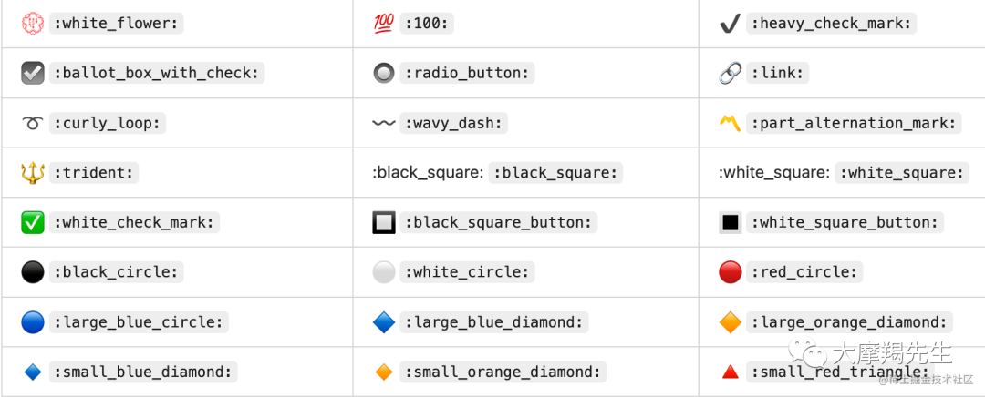 markdown-emoji 这是我一直使用的表情符号库。Markdown支持符号展示,这些小符号就像是枯燥文章的小精灵🧚♀️,大家可以适当进行插入,让文章内容活跃起来,而且也可以较好的浓缩表达内容到标题上,也可以起到内容分类、分层等效果。