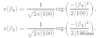 接下来我们定义参数β0和β1的先验分布。与似然函数一样,我们将使用先验分布的对数。