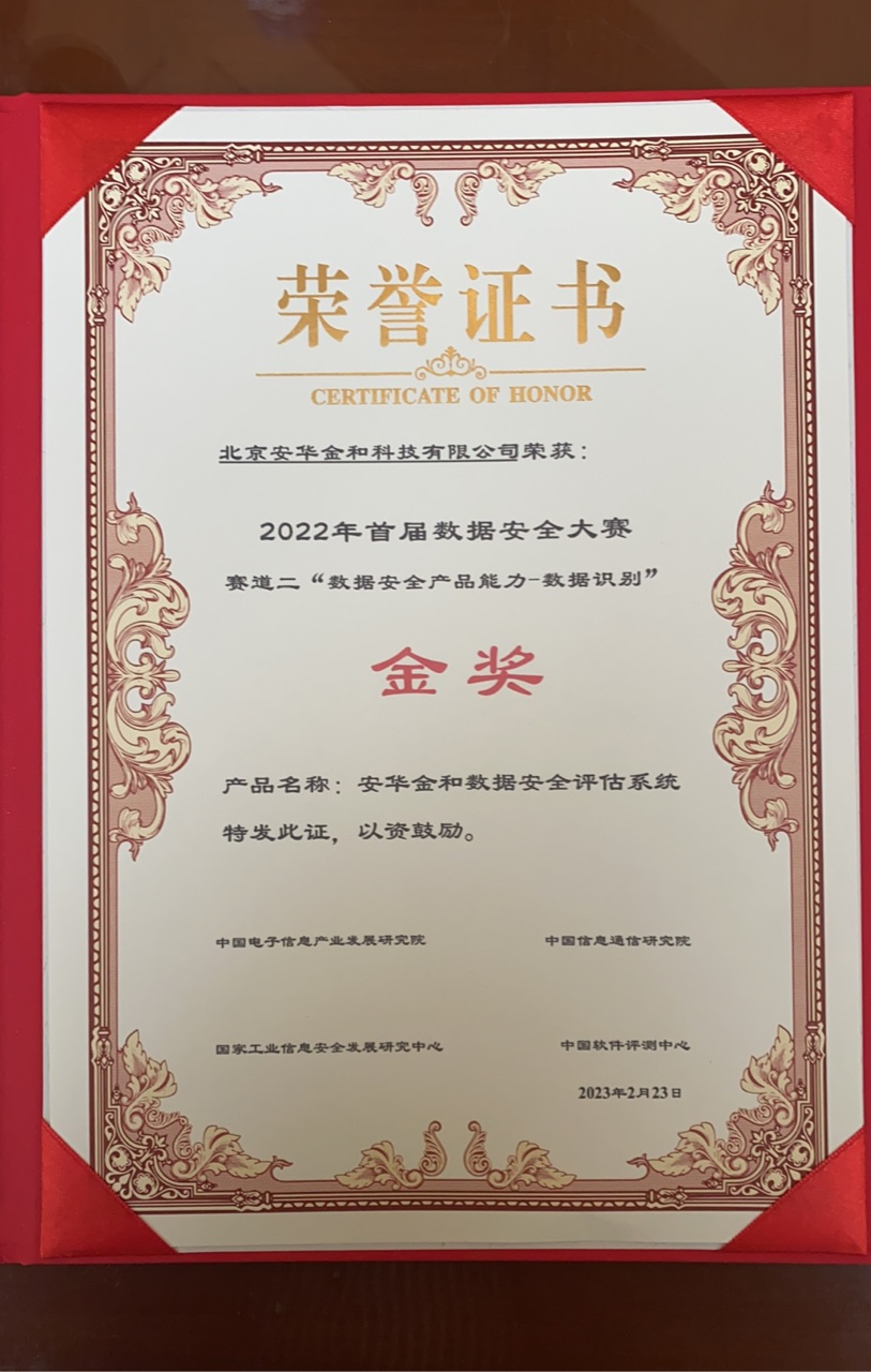 本次大赛中的“数据安全产品能力--数据识别”赛道,评委组根据各参赛方提交的分类分级结果,从数据资产识别率以及分类分级准确率进行综合评判打分。安华金和在众多参赛队伍中脱颖而出力拔头筹,充分展示了安华金和强大的研发实力、领先的创新能力和广泛的市场认可。
