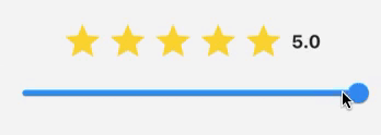 来搞定。需要注意的是,由于分值变成了小数,因此无法通过点击星星图标实现分值的改变,需要依赖输入框、滑块组件来修改评分。下面就是利用滑块实现了评分值的更改,可以看到RatingBarIndicator
