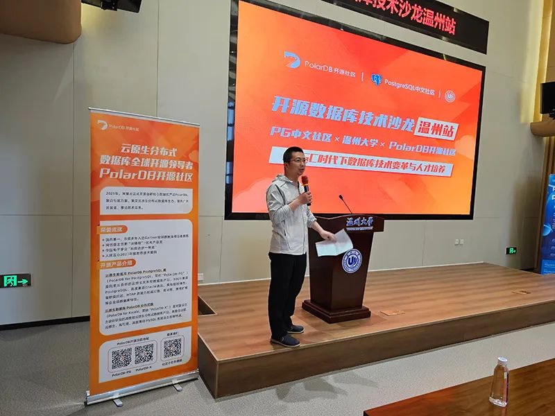 2023年5月12日,以“AIGC时代下数据库技术变革与人才培养”为主题的开源数据库技术沙龙在温州大学科技综合大楼圆满结束,PostgreSQL中文社区、PolarDB开源社区、温州大学、温州市计算机学会、索易软件、阿里云、北京神脑资讯技术有限公司等社区及企业参与,分享PostgreSQL与PolarDB技术、探讨开源数据库技术与AIGC工人智能方面的内容。