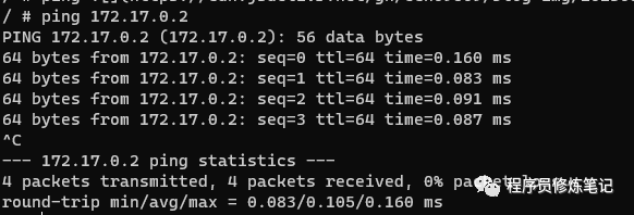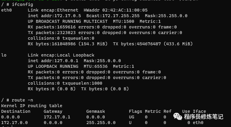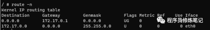 通过上图我们可以看到容器中有一张eth0的网卡,且eth0是容器中的默认路由设备。