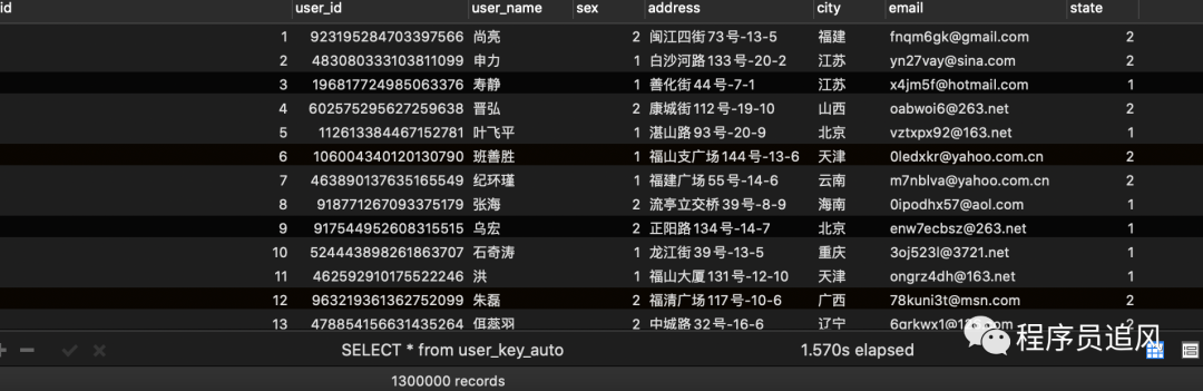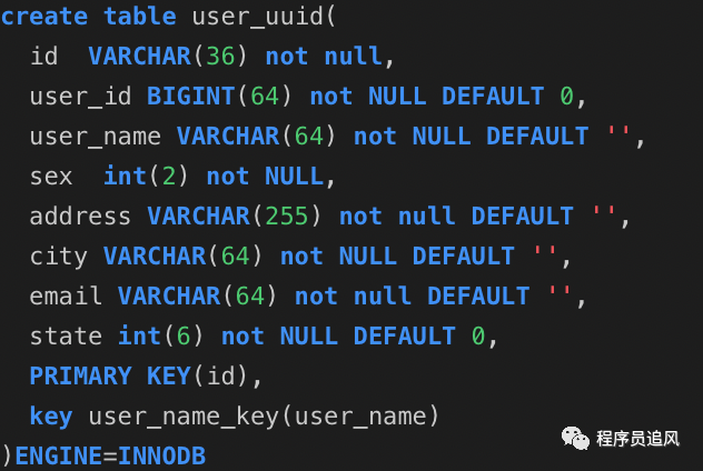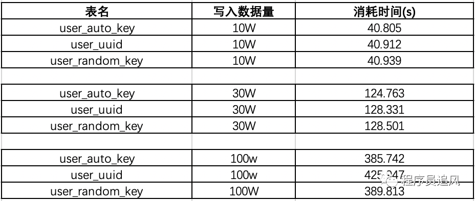 分别是user_auto_key,user_uuid,user_random_key,分别表示自动增长的主键,uuid作为主键,随机key作为主键,其它我们完全保持不变.