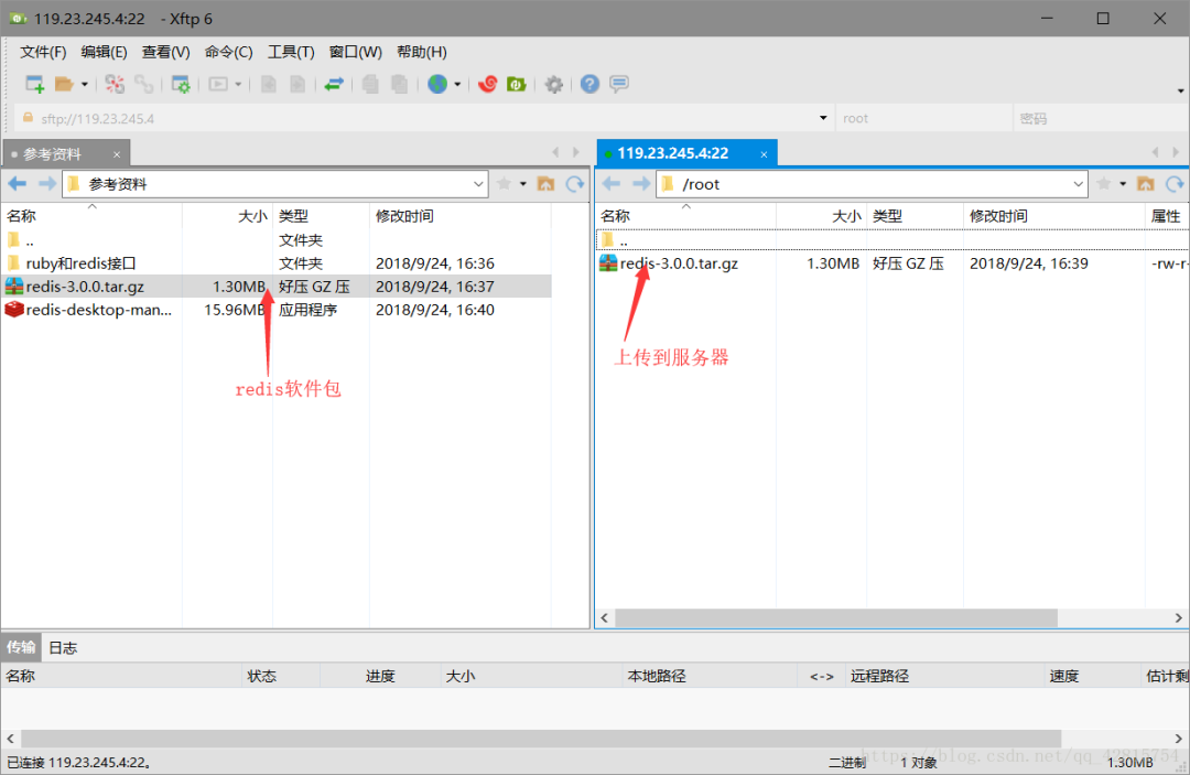 笔者这里是通过Xftp 6进行操作的,如图所示