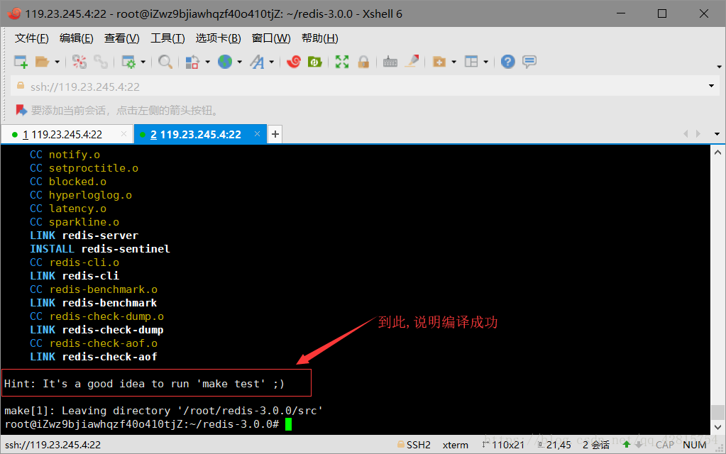 2.9 至此,可以启动redis了,默认启动模式为前端启动,指令如下
