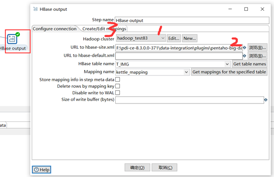 Hbase中建表:create 'T_IMG', 'info';建一个T_IMG表,info列族。按照图中顺序配置(参考官方文档)