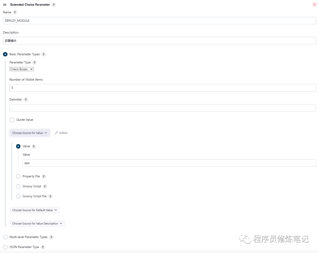 3. 设置部署模块参数,类型为Extended Choice Parameter,如下图: