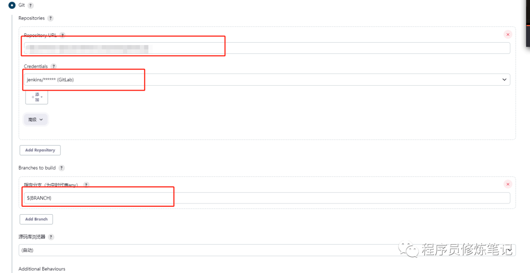 Branches to build用来指定拉取代码的分支,这里可以看到我们用到了变量,变量的值取自我们第2步选择的值(也就是构建时选择的分支)