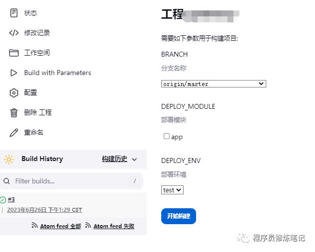 我们选择分支,部署模块,部署环境即可开始构建,如下图: