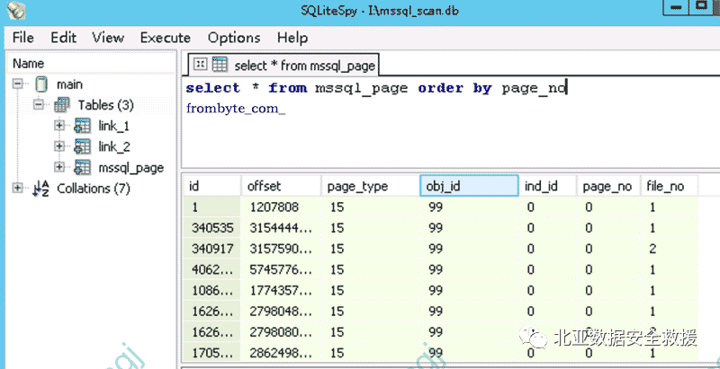 北亚数据恢复工程师首先使用自研发的SqlServer数据库工具对硬盘进行全盘扫描。