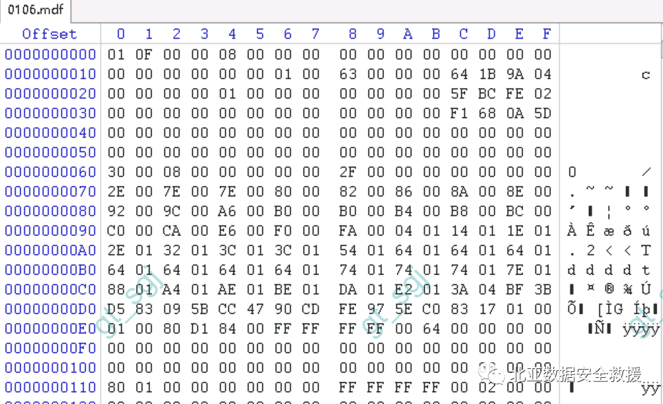 经过北亚数据恢复中心工程师对客户硬盘的初步检测,确认了客户的SqlServer数据库基础信息如下:
