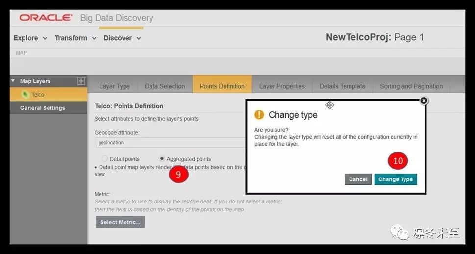 我们可以改变图层的显示类似,我们这次更改图层为Heat Layer显示方式。下面我们来配置地理位置字段信息,点击pointsDefinition按钮,进行配置