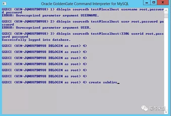 2)、在ogg的安装目录执行ggsci命令,启动GoldenGate的命令行工具,然后执行create subdirs,建立相关的目录
