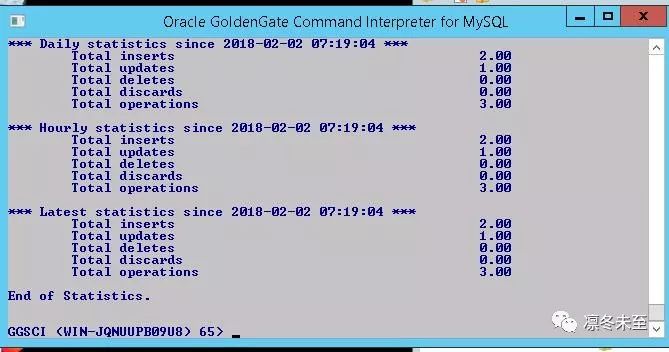 通过GoldenGate的命令行工具检查,看到实时变化的数据已经被同步过来。
