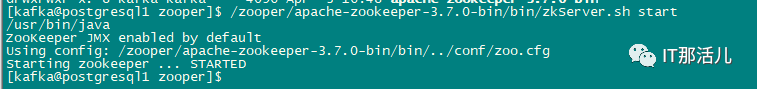 ▼▼▼vi zooper/apache-zookeeper-3.7.0-bin/conf/zoo.cfgtickTime = 2000dataDir = zooper/apache-zookeeper-3.7.0-bin/dataclientPort = 2181initLimit = 5syncLimit = 2/zooper/apache-zookeeper-3.7.0-bin/bin/zkServer.sh start$ JMX enabled by default$ Using config: Users/../zookeeper-3.4.6/bin/../conf/zoo.cfg$ Starting zookeeper ... STARTED