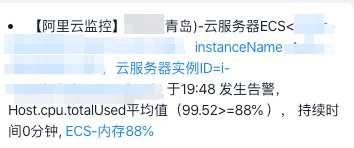 值为100%,说明这条进程占用CPU的时间已经到达100%,线上的警报就是由这个进程发出的。