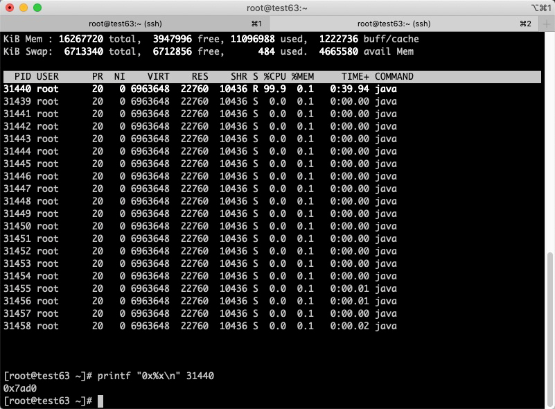 第四步是用jstack 进程PID | vim +/十六进制线程PID -
