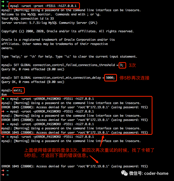 connection_control_min_connection_delay=2000在MySQL命令行终端中配置如下: