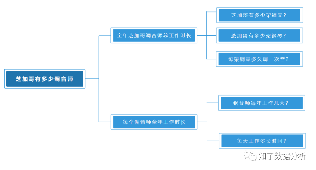 其实这类估算问题,被称为费米问题,是以科学家费米命名的。让我们来看一下费米是如何解决这类问题的。他曾在芝加哥大学课堂上凭空抛出的一个看似荒谬的问题:“芝加哥有多少个钢琴调音师?”